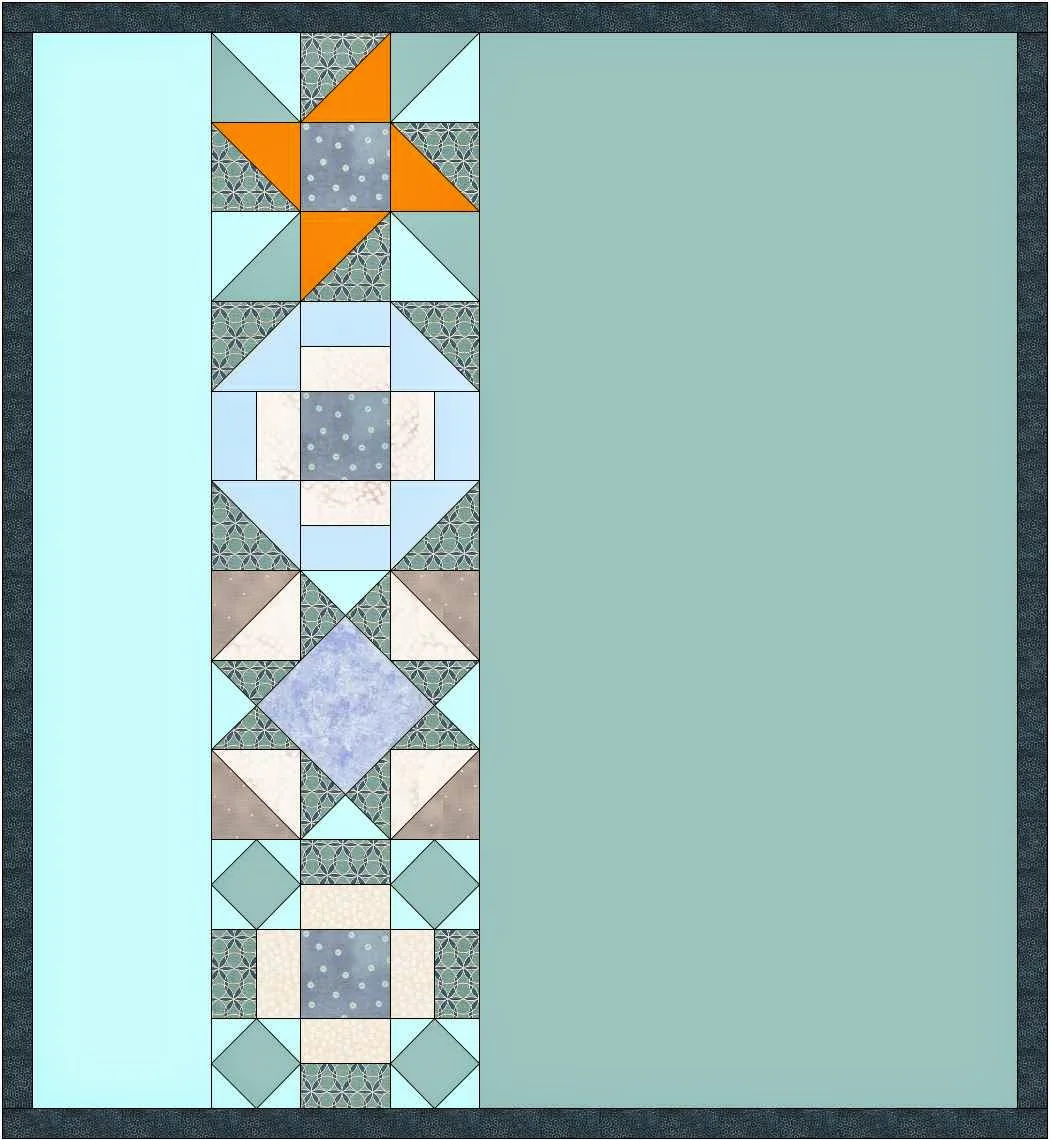 I wanted the quilt to be large enough for toddler nap quilt. The 4 blocks lined up in a strip was only 36 inches long. I wanted to add another 9 inches. So I increased the number of setting blocks on the EQ7 Quilt Worktable from 4 blocks to 5. But that left me with a blank block at the top or bottom of the row which was not what I wanted.