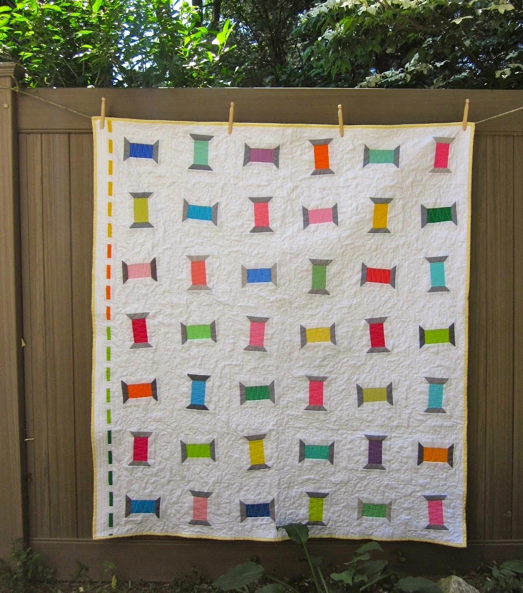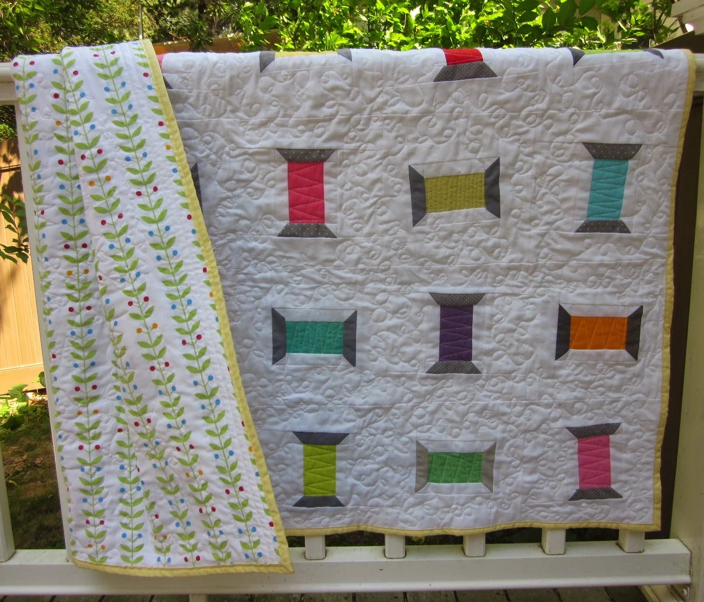 My Jumbled Spools Quilt is done! I had so much fun designing this quilt, sewing it and doing the quilting. There were some bumps in the process but that's just part of designing.