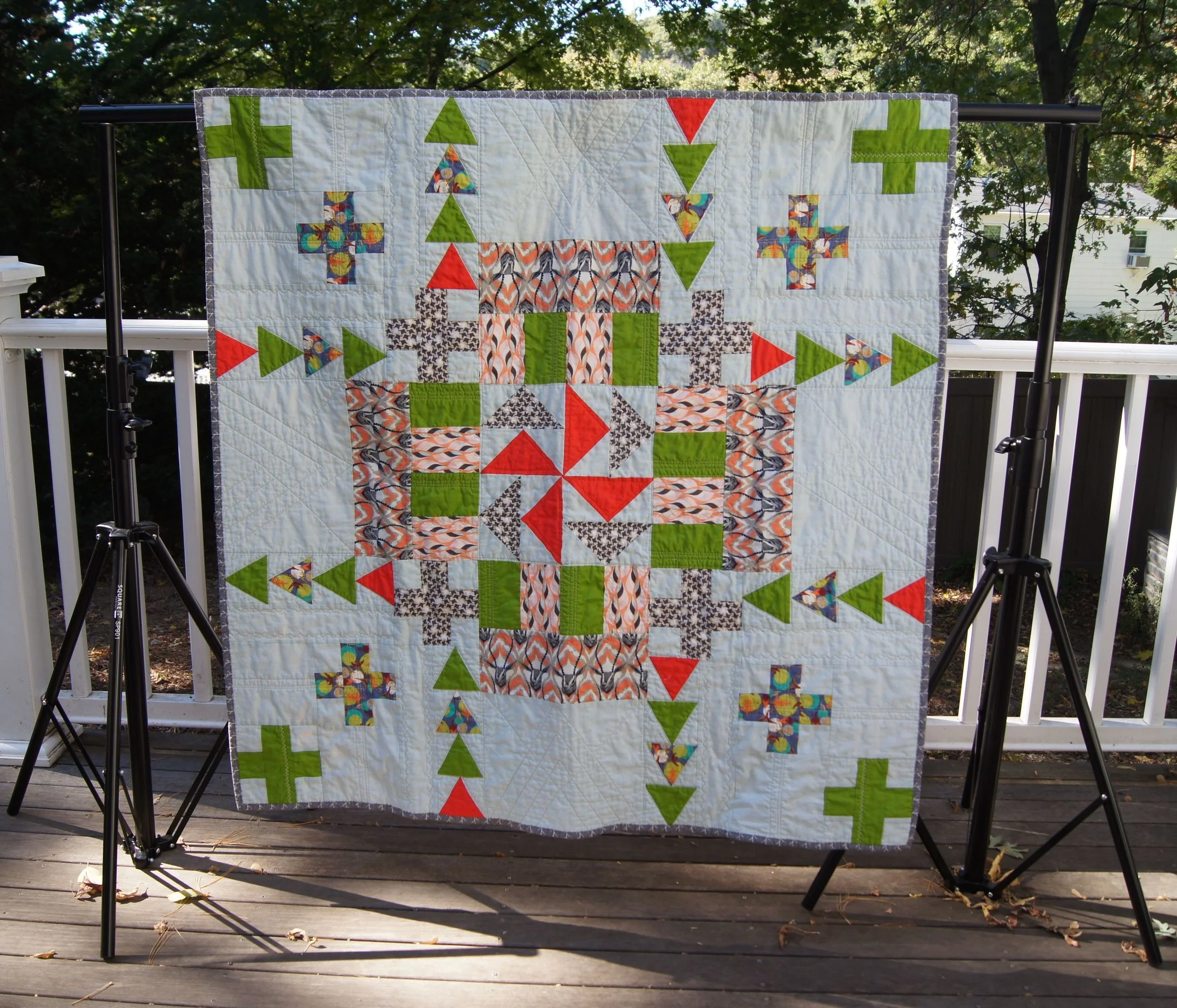 Caro Sheridan of Splityarn gave a great talk about photographing quilts at the September 2014 meeting of the Boston Modern Quilt Guild. (You can read a synopsis of her talk by clicking the BMQG link in the previous sentence). One of the things Caro suggested was using a frame made photographic backdrops to hang up quilts for photography.