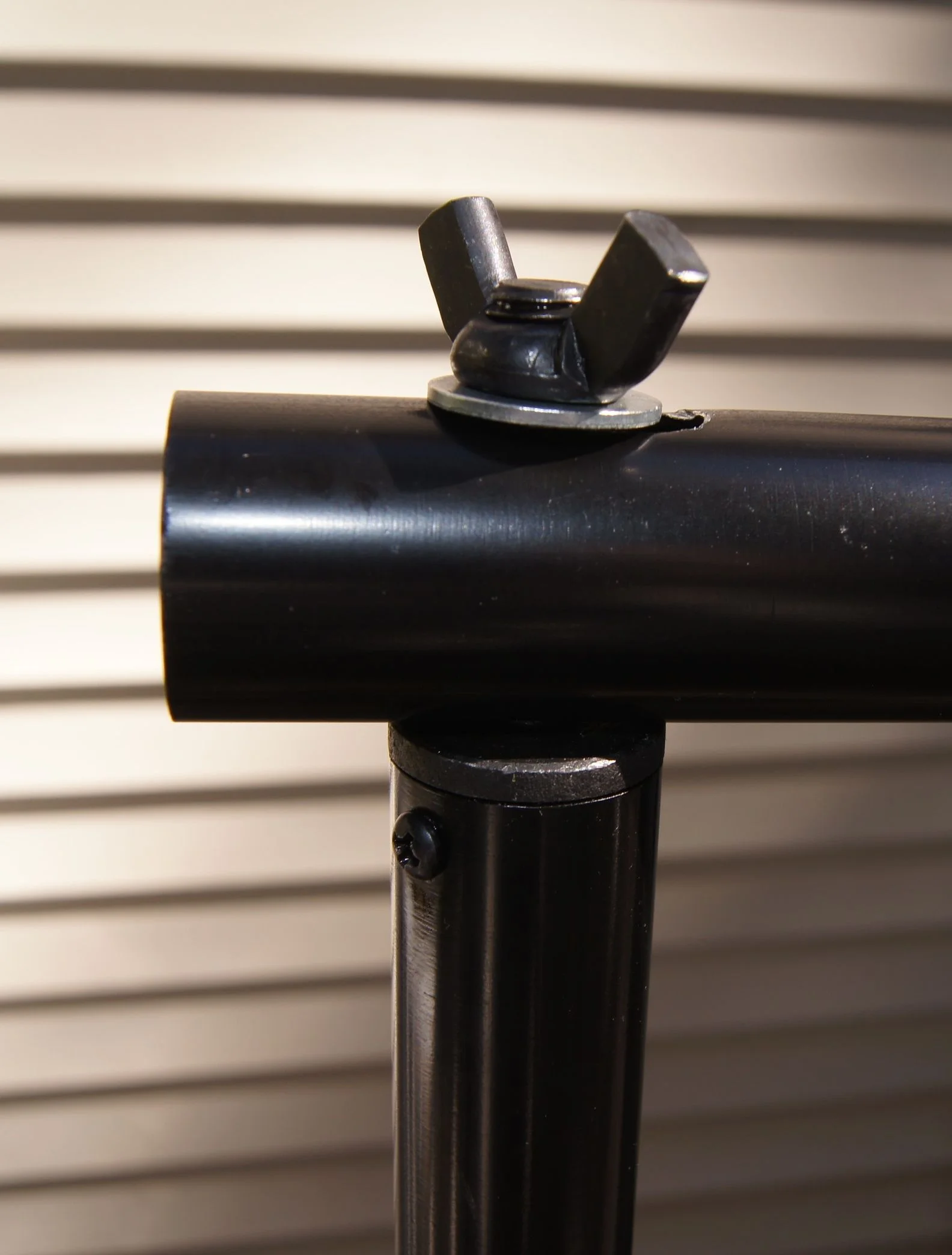 There is a wing nut at each end of the top of the frame which is great. Your quilt won't be able to take off if a stiff breeze comes up while you are taking photographs!