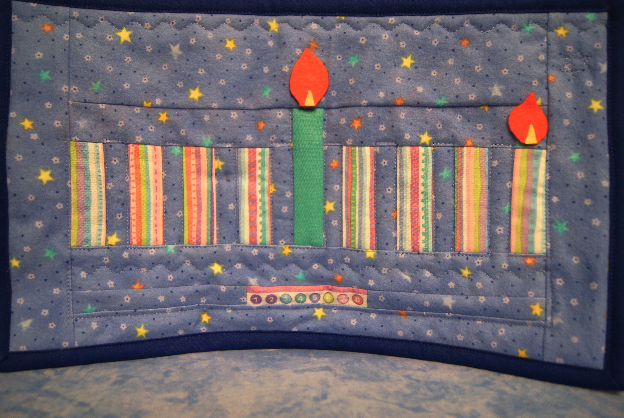 Hanukkah Mini Quilt 9 x 15 inches, quilting cotton, flannel and felt