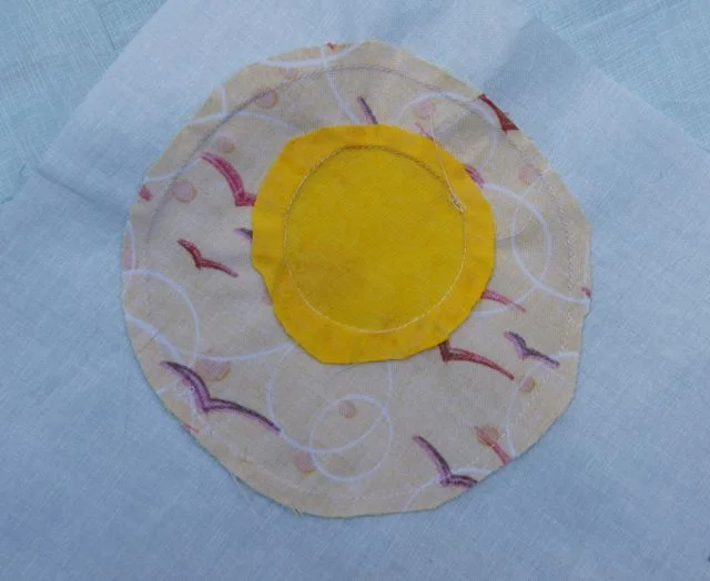 I made 4 Reverse Circles in the quilt top for sailboats and a double reverse circle for the sun.