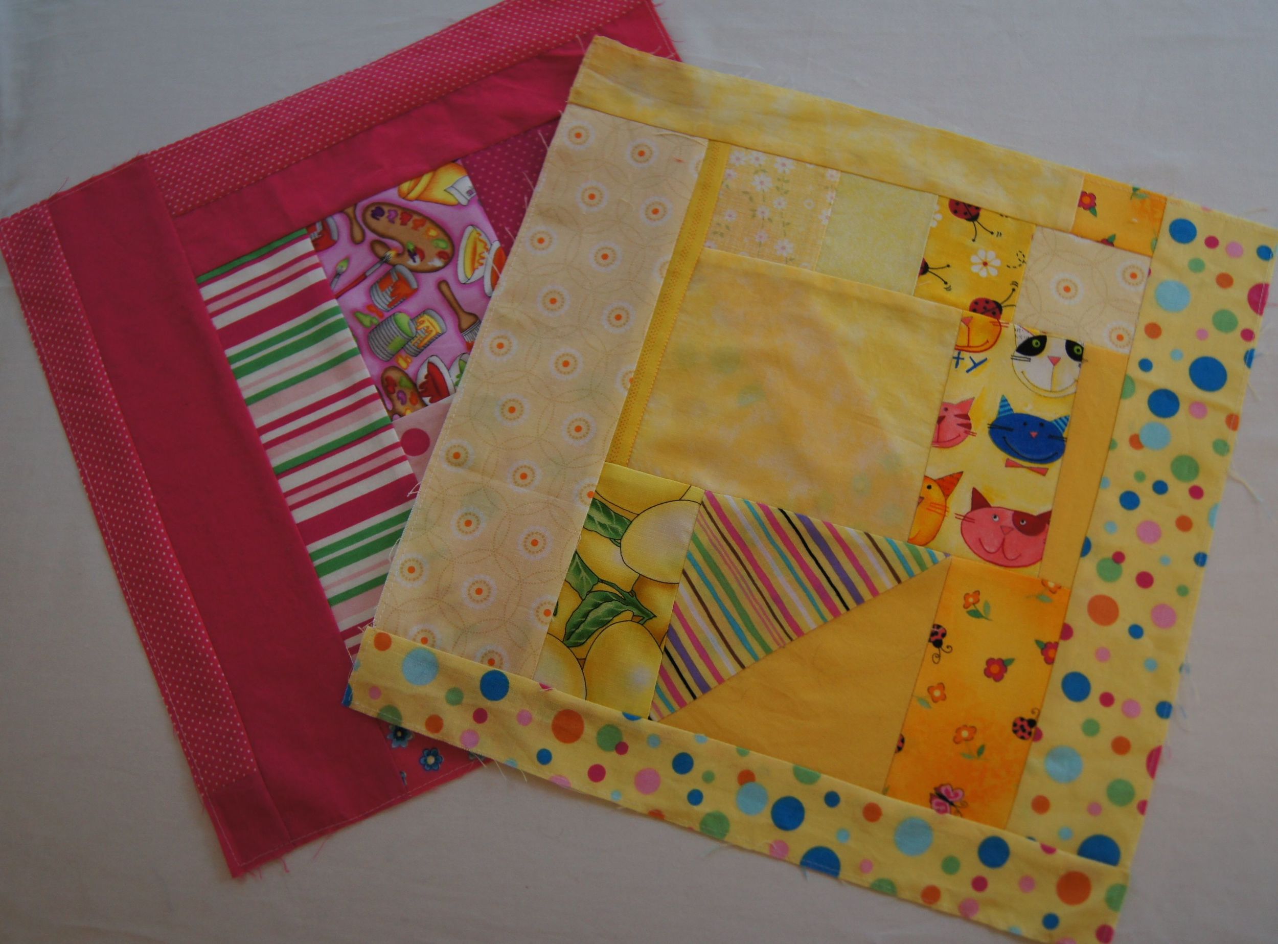 Knowing the quilts were going to children, I couldn't resist including some novelty fabrics. There are paints and painting tools in the hot pink block. The yellow block is more fun. It has