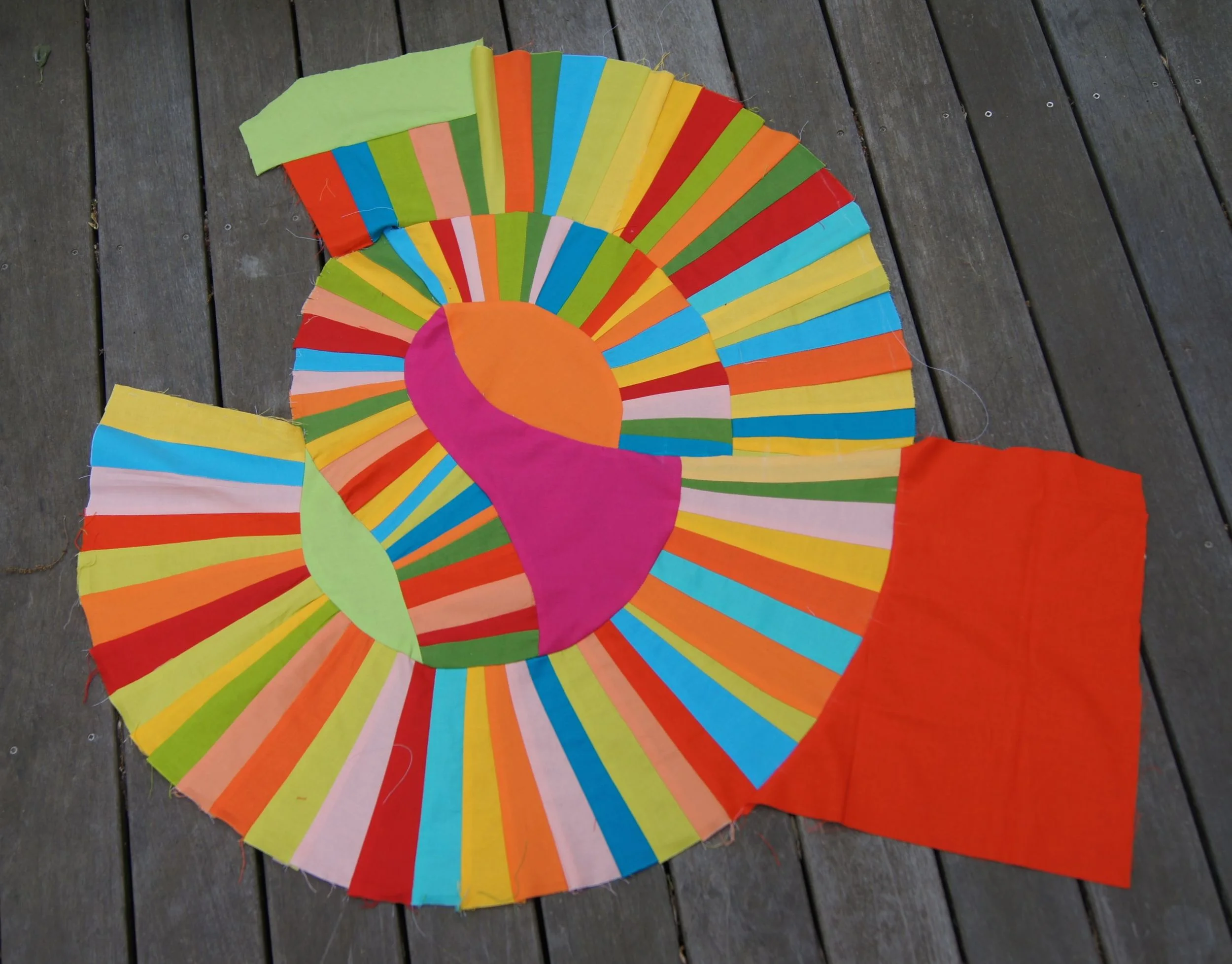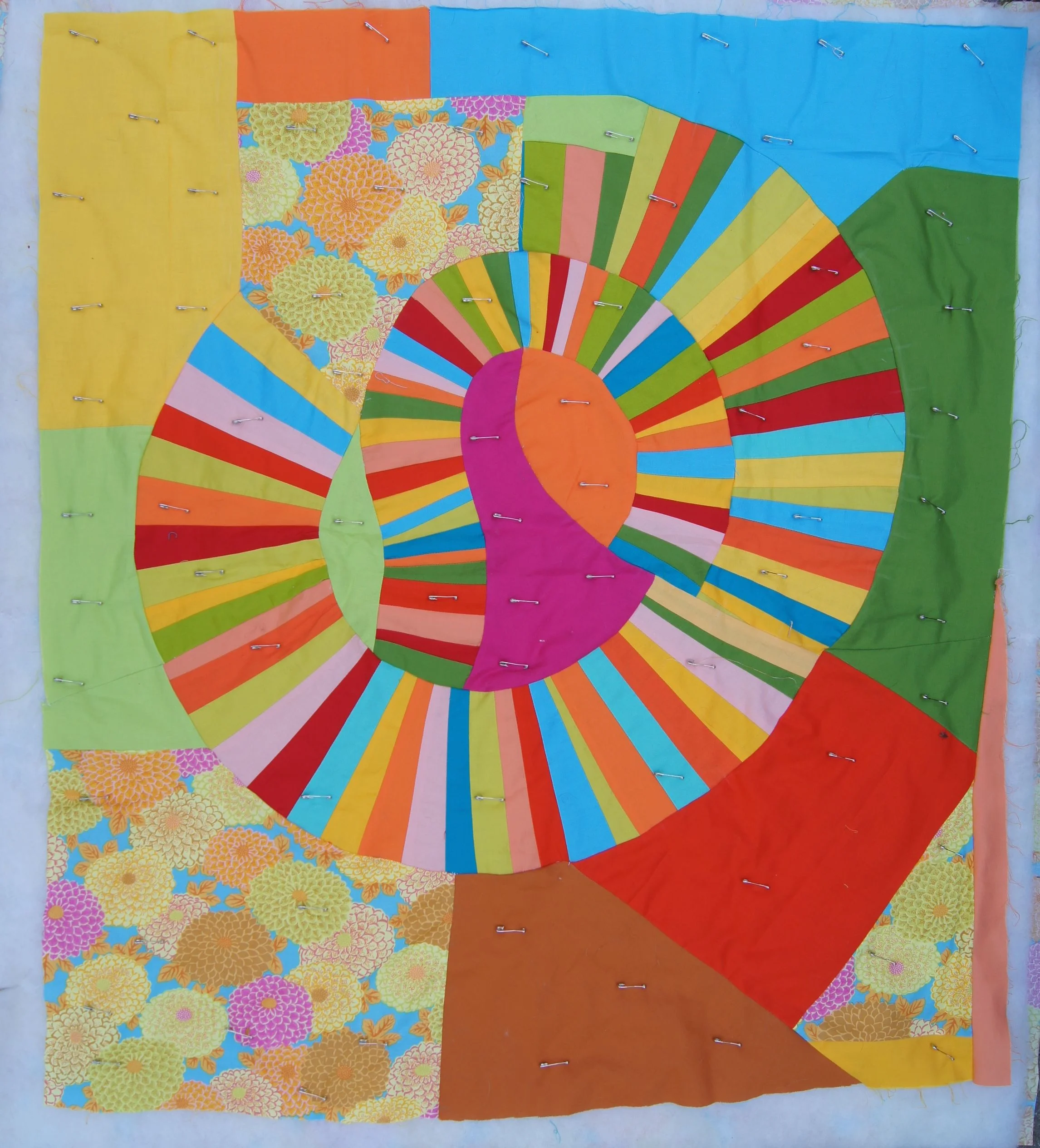 Sherri writes in her book that as you start to piece these curved wedges together, the quilt form changes. So true! You can see how different my final layout is from the one I started to appliqué.