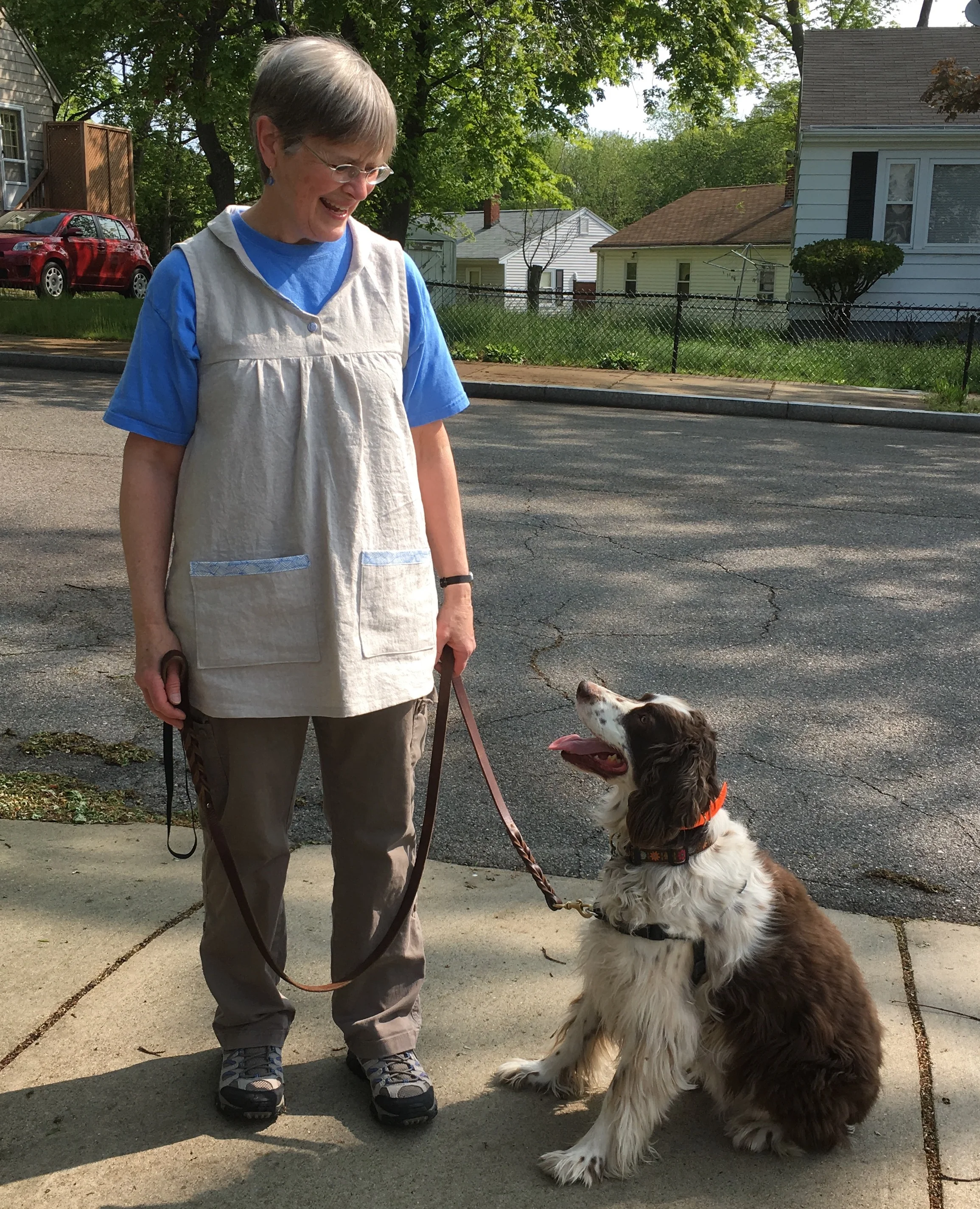 "West Water Tunic", with Tipper. Snapshot by my neighbor, Kelly Savage