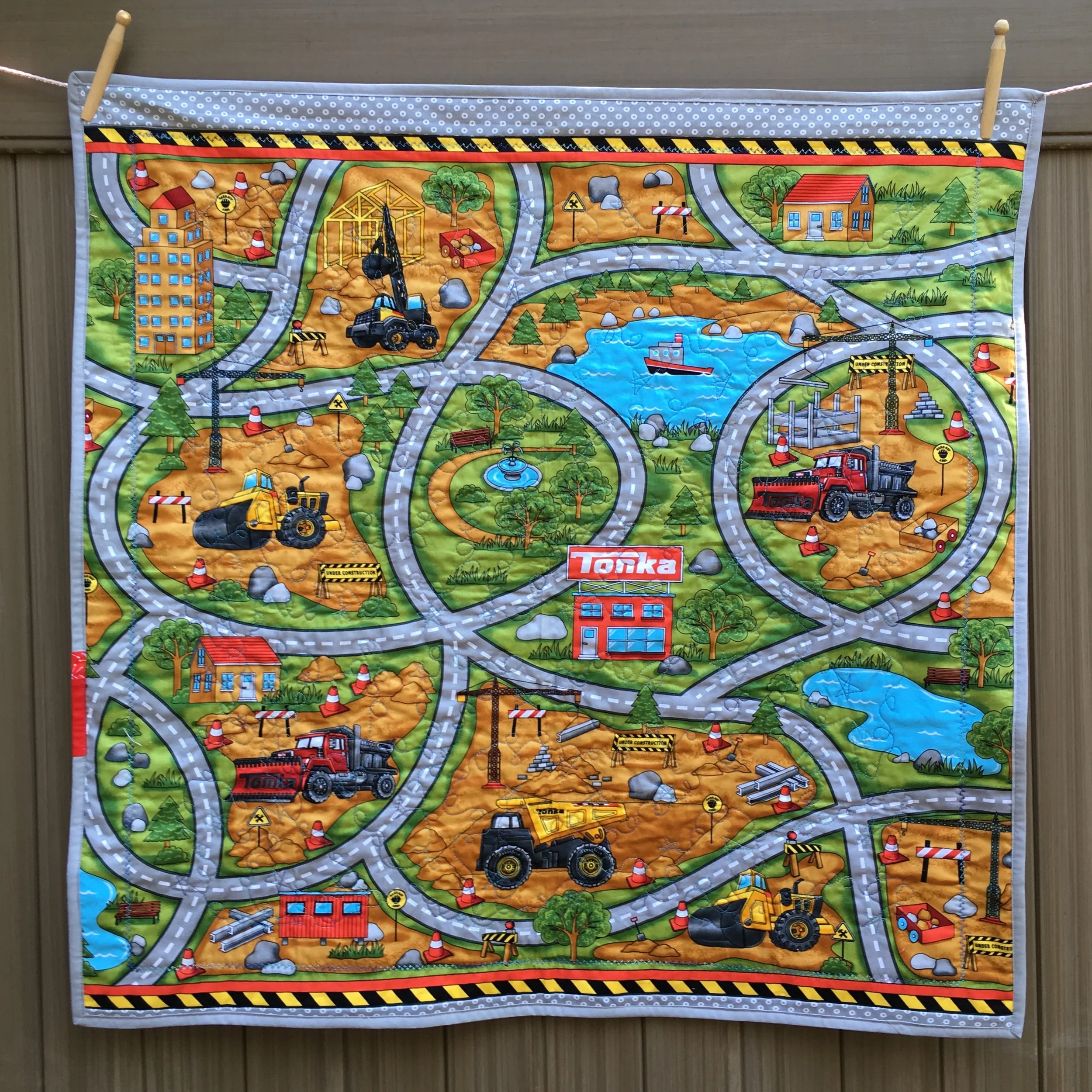 The front of this quilt will be good for floor time when the baby is an infant, and play time when he's old enough to have a garage full of toy cars and trucks! Fun times!