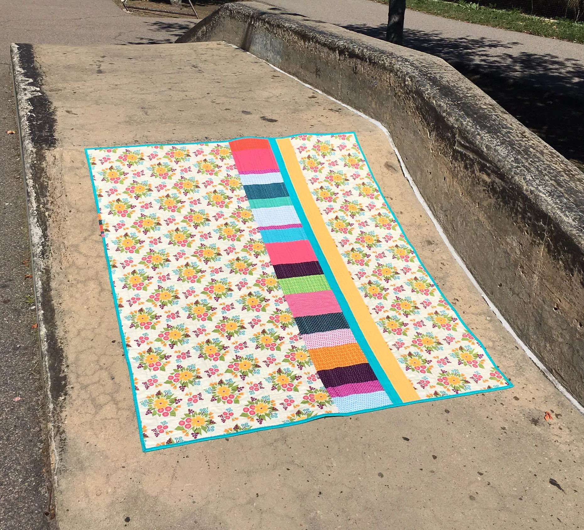 The above photo is the back of the quilt. It's fun to see all the beautiful colors of the Uppercase fabrics stacked up together in a column. (The floral and solids aren't part of the Uppercase line).