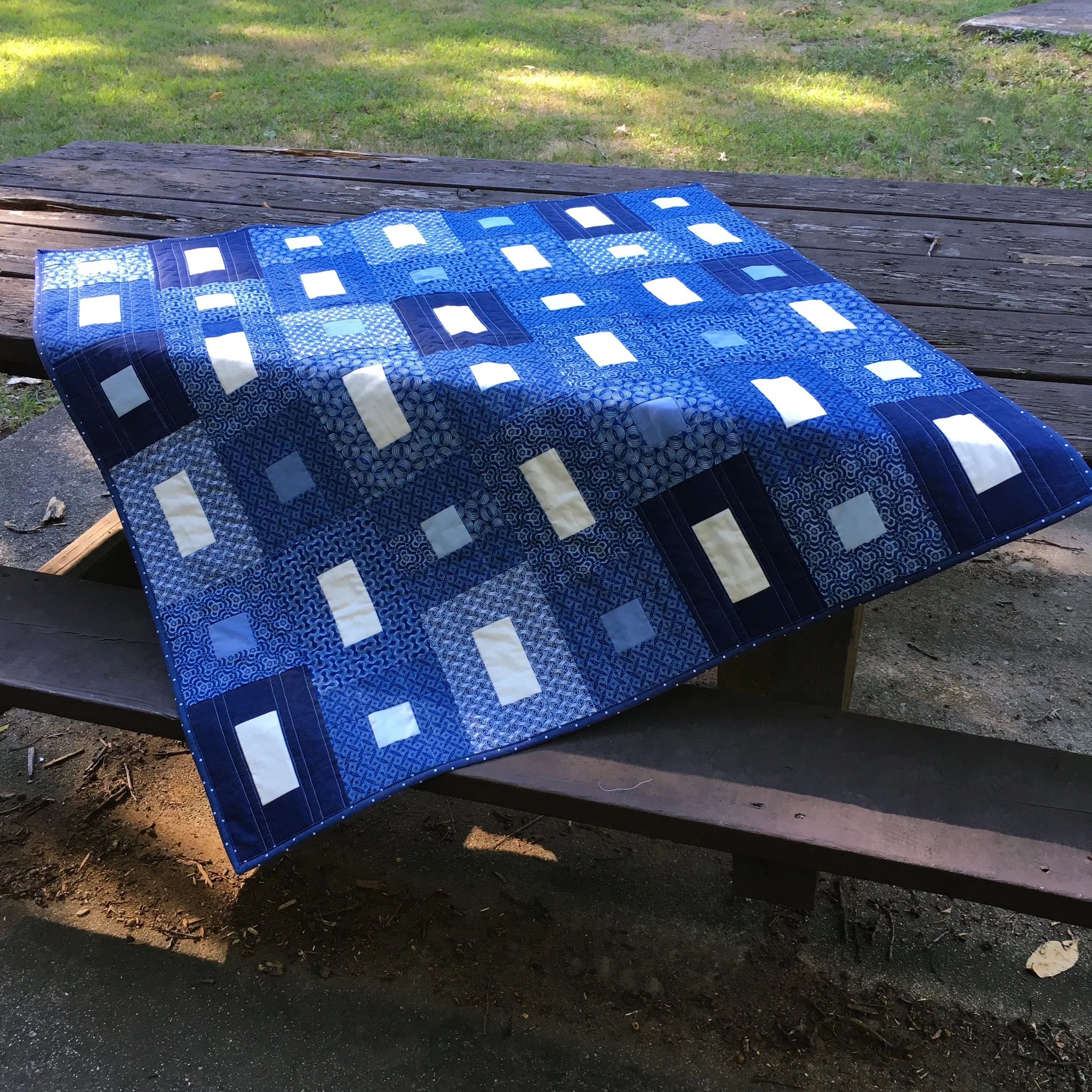 Indigo Color Quilt with Shweshwe South African fabrics
