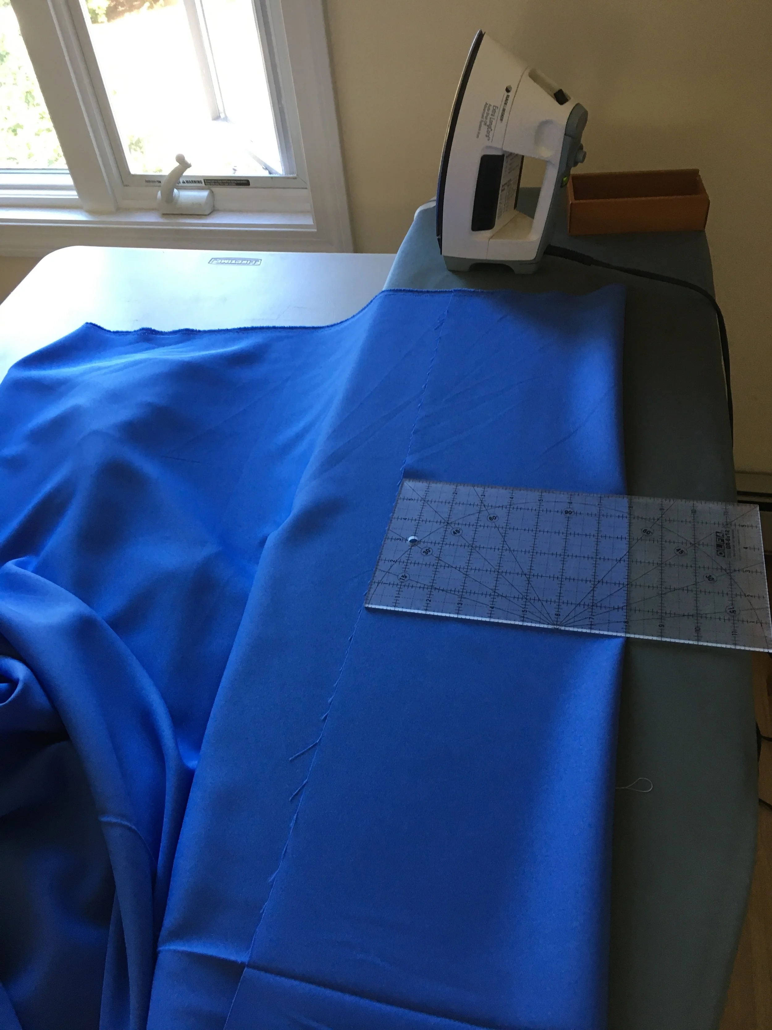 The fabric I was given for this project was polyester....very slippery stuff! It was really difficult to iron because it kept sliding off the ironing board.