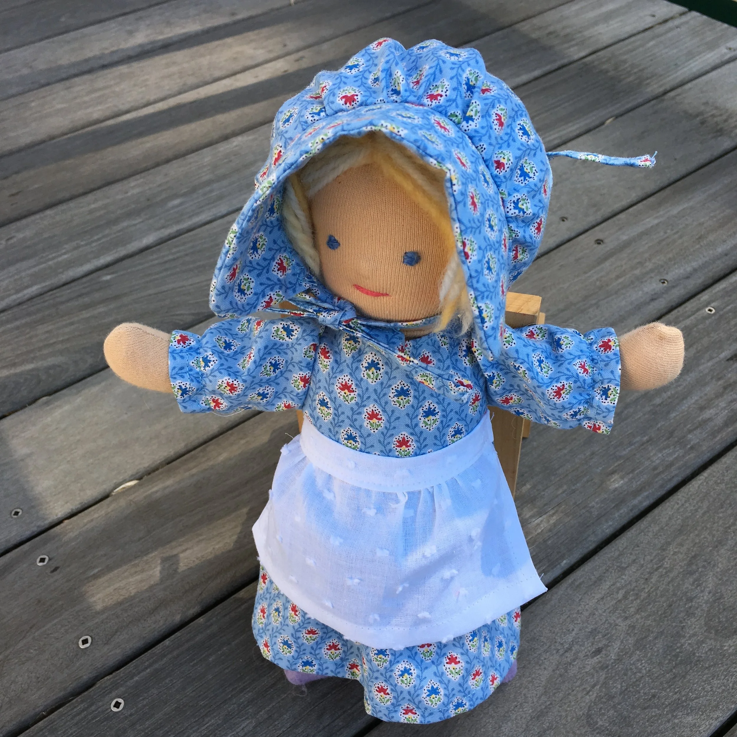 Here’s the other outfit using reproduction 1930s fabrics that I’ve finished recently. This is for the little Waldorf baby doll I designed. it’s a little pioneer outfit.
