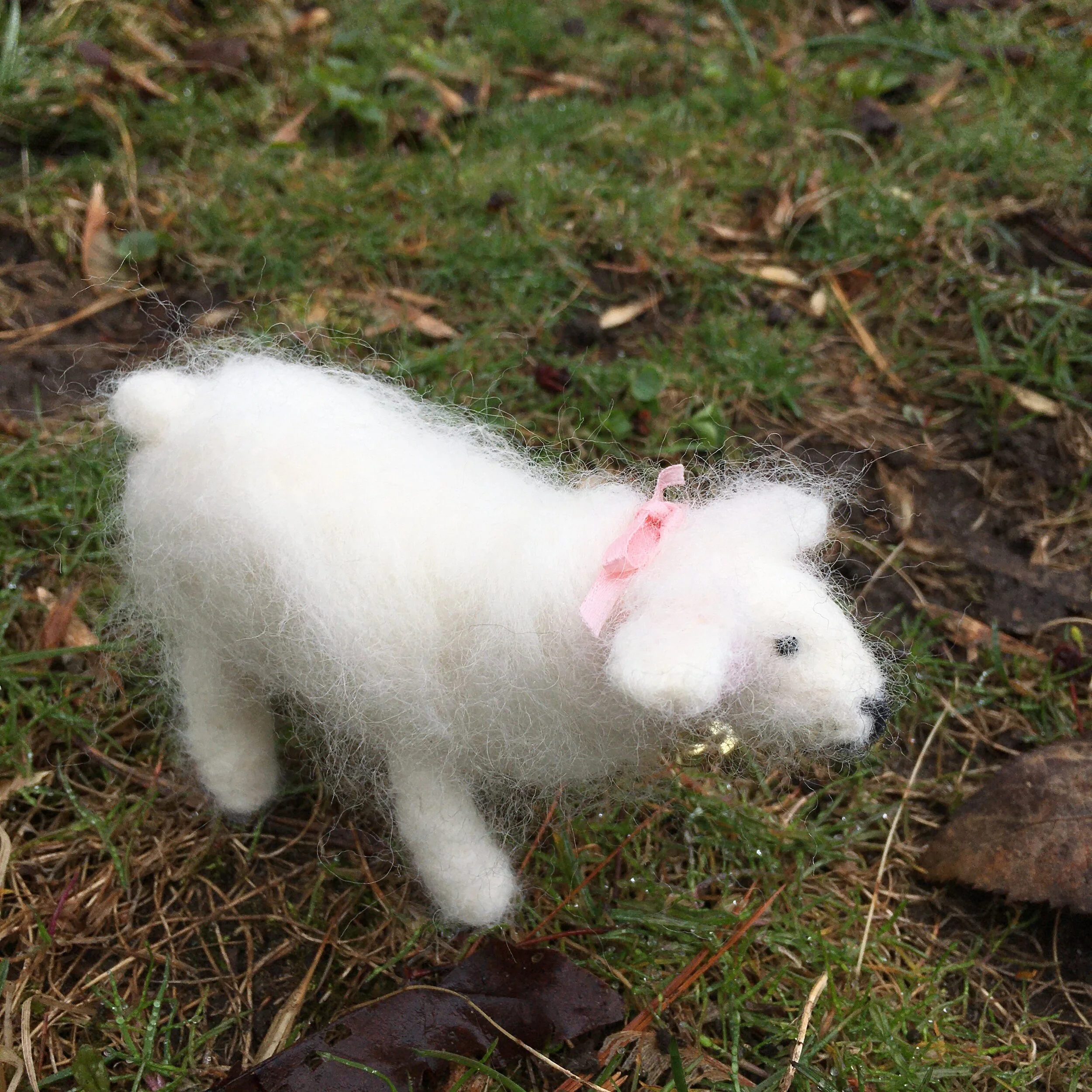 You’ll need a foam felting pad * which isn’t included in the kit. Other than a bit of black thread, the kit has everything to make one sheep, including the felting needles. There is enough wool roving to make at least two sheep, but just there is just one (silent) bell in the box. I was able to make this cute sheep in a couple of hours one afternoon.