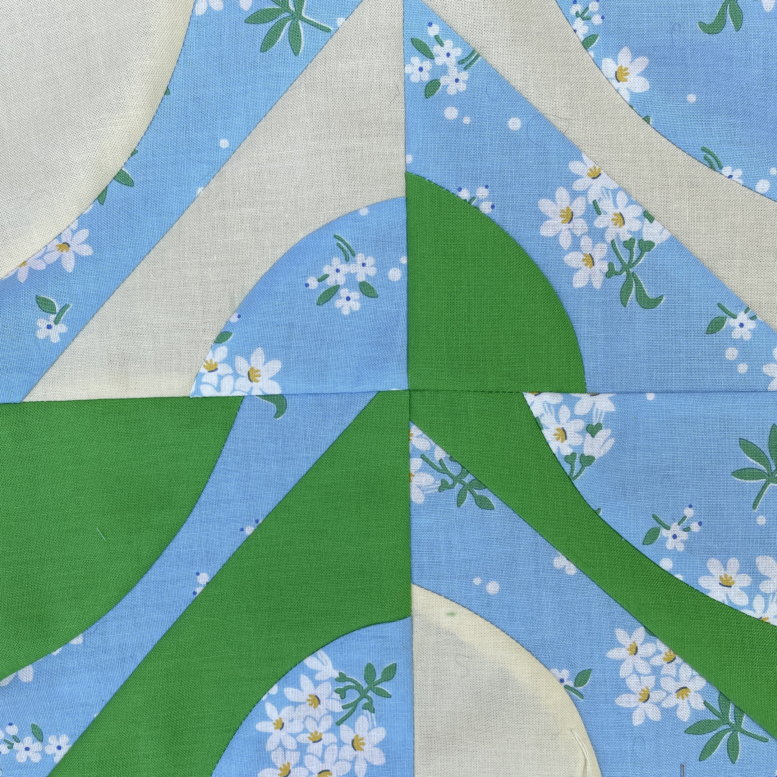 The block above is 39/52. Some of the strips have slightly curved seams. Cheryl does love a good curve! She used lots of them in the blocks this year.