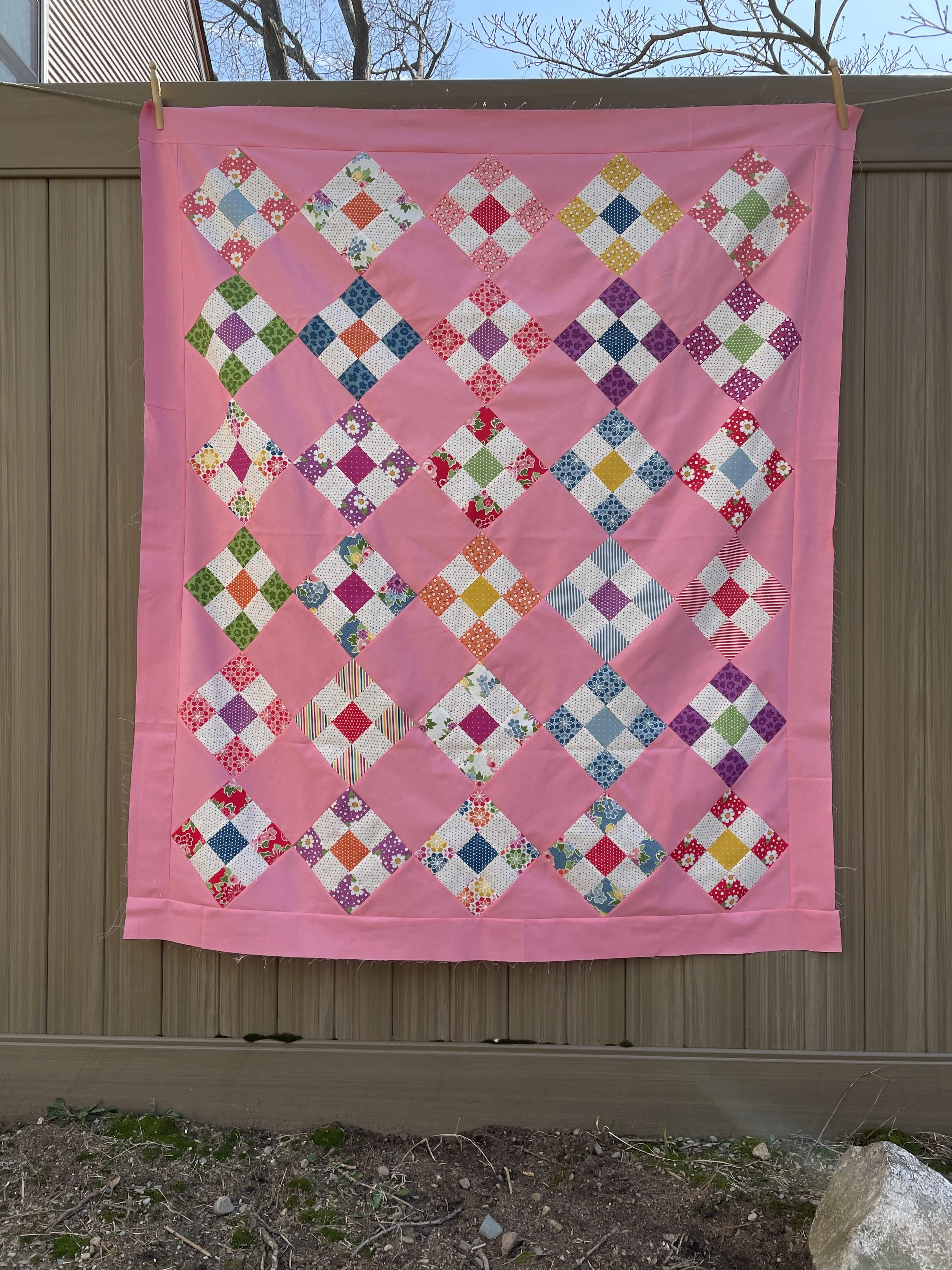 The puppy is back to his bouncy self, so this quilt top is joining a growing stack of tops in need to quilting.
