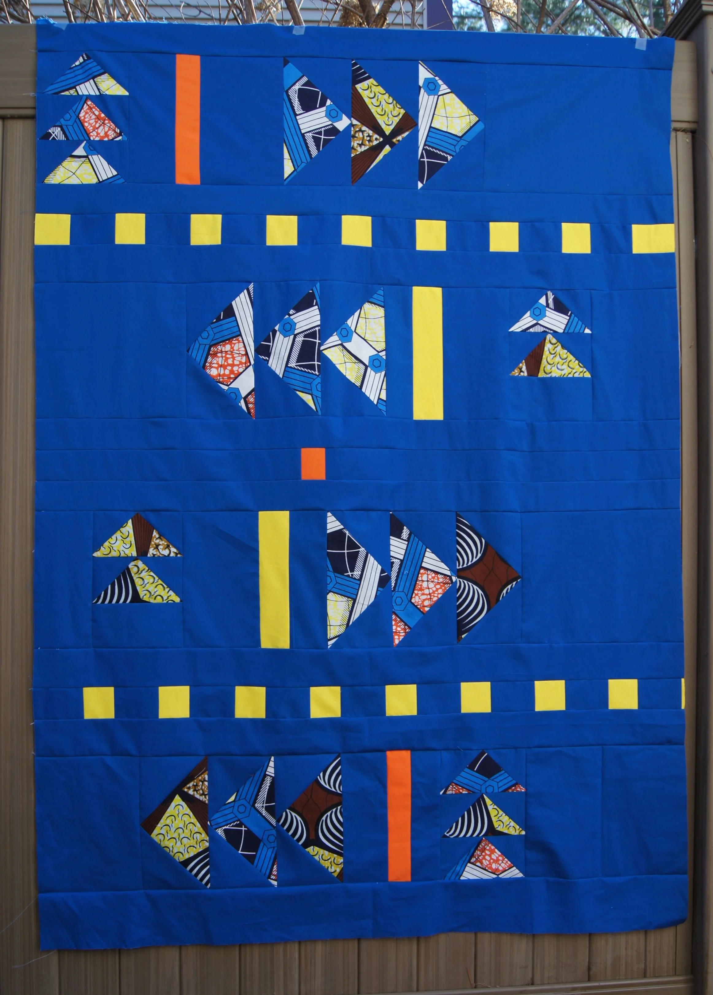 Cheryl has made a quilt of with the colored dancing bars seen on a music equalizer. My brother, who spent his teens and early 20s in recording booths, would love this one!