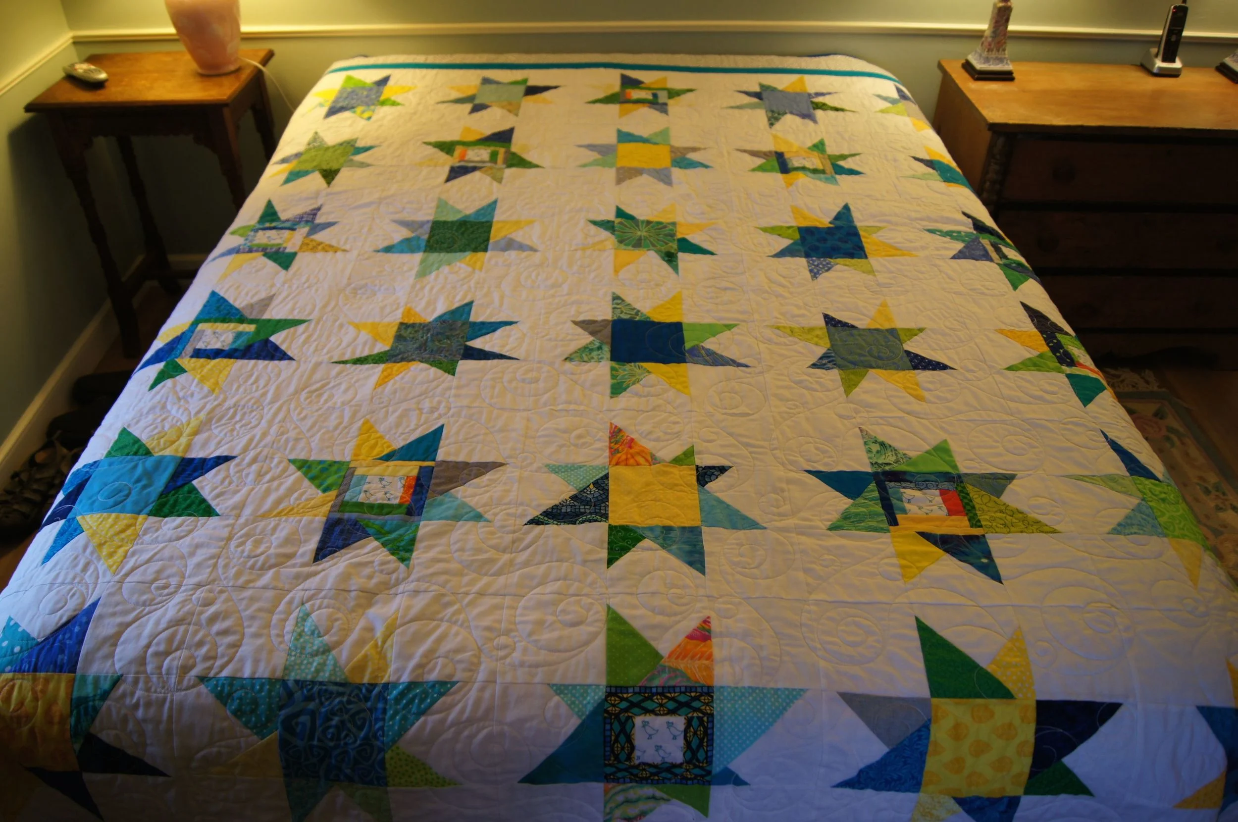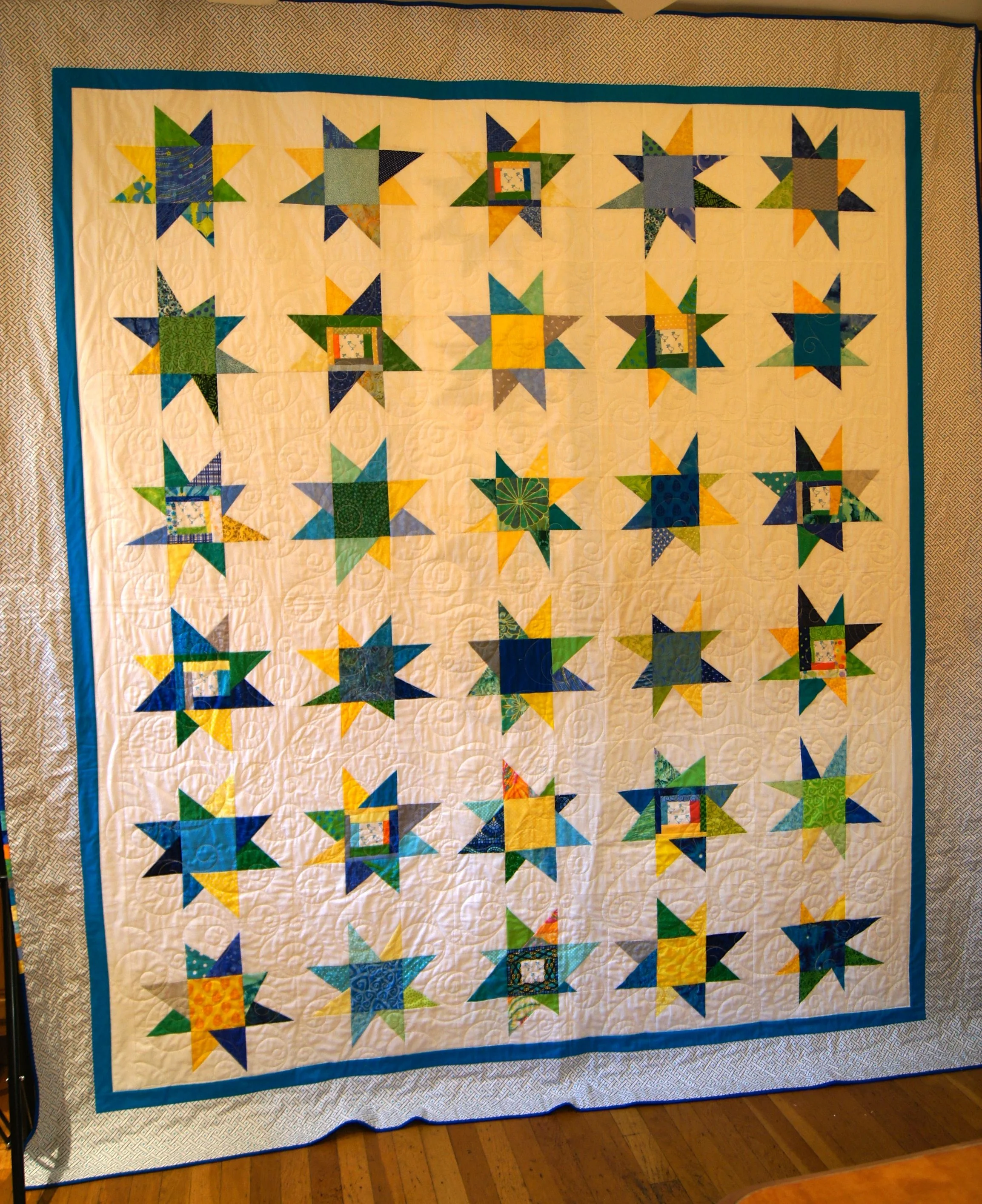 Here is one of the quilts in the show. The pattern, "Flying Birds" is my design. The quilt was made by Janet Hanley. I've previously posted this pattern as a smaller baby quilt. Here it is a generous lap quilt. It's much easier to see the motion in this larger quilt.