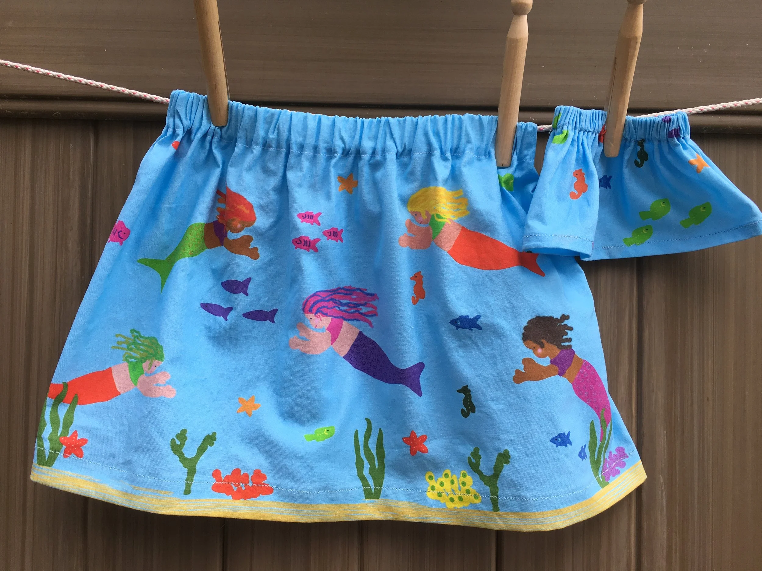 Mermaid Skirts for child and doll. (Click link to open the tutorial). The mermaid fabric can be purchased from my Spoonflower Shop.