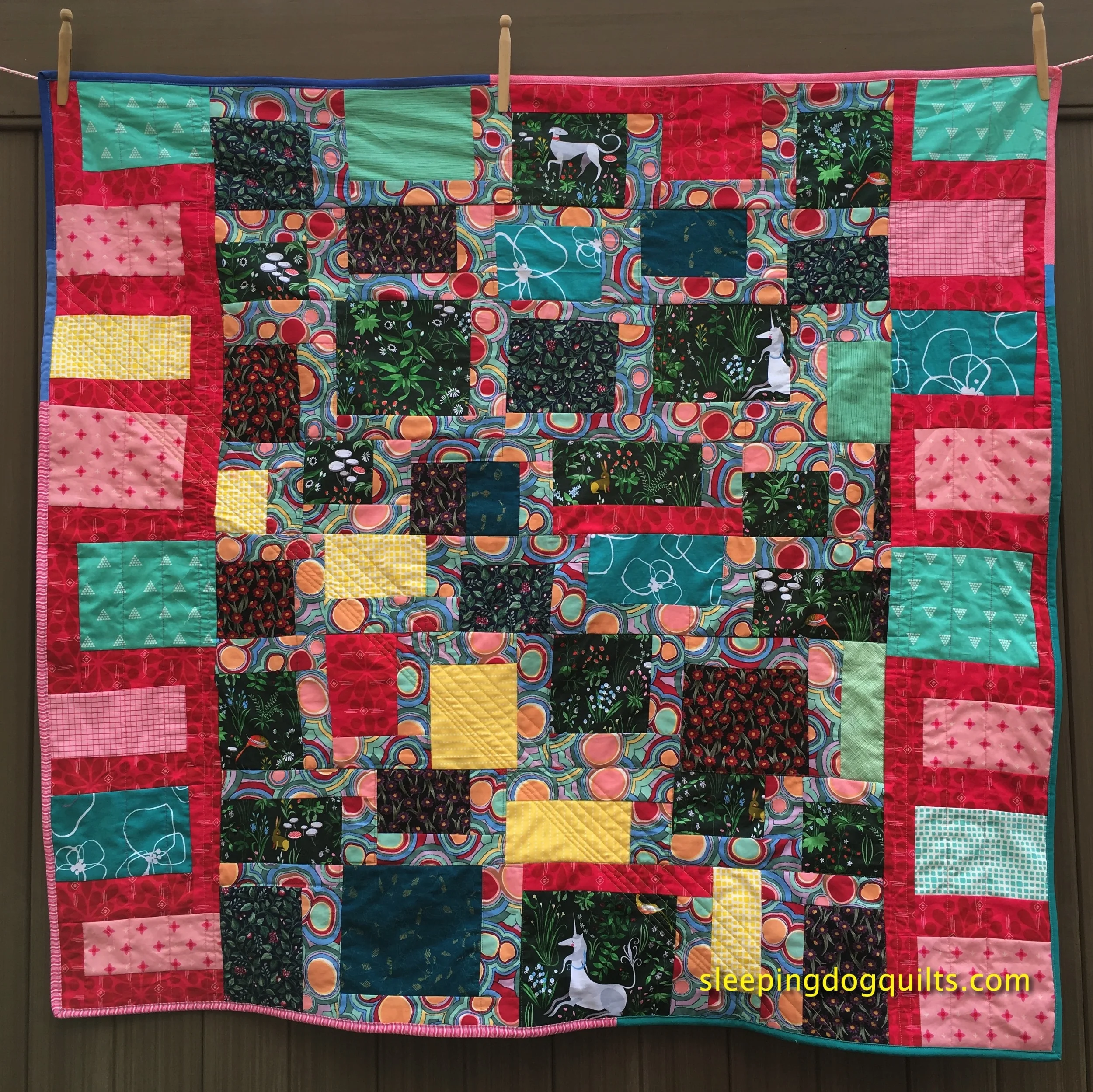 "French Forest Tapestry" Modern Improv Quilt 46 inches wide, 43 inches high